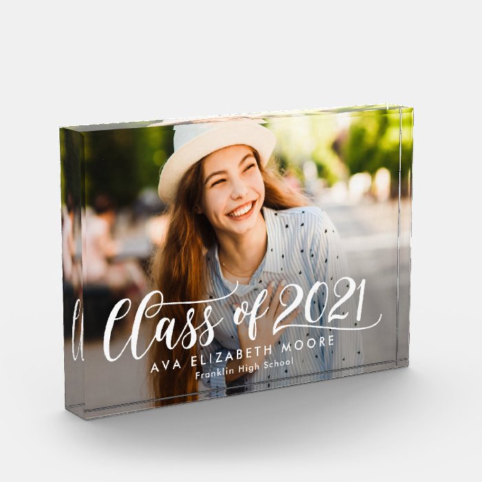 Preserve the memory of this special occasion with custom acrylic photo blocks or desktop plaques that your grad can proudly display on their desk.