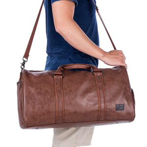 This leather bag looks luxurious for a weekend getaway or a trip to the gym. The provided shoe compartment is a major plus.