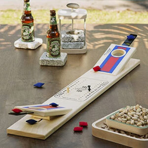 This classic cornhole set is made of sturdy materials, and compact enough to fit into a backpack.